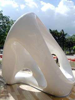 《旋》展現出彈性形體在超高速運行中富美感而渾厚堅實的動態。作品表現出旋轉和扭曲結合下所呈現既突出又富功能性造型。隆起的部份可供人們坐下休憩,而延伸的部份則提供斜倚的機會。向上伸展的曲線提供遮蔭的陰涼處。